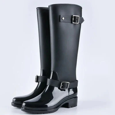 Short-thigh Boots Autumn New Pointed Toe Sleeve Metal Buckle Non-slip Wear-resistant Block Heel Shoes