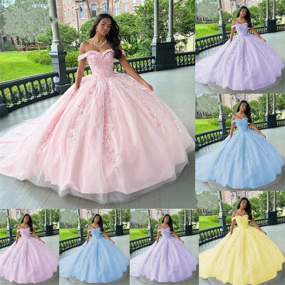Ball Wedding Beauty Pageant Pink Off-Shoulder Dance Party For Party Lace Tulle Court Train Formal Birthday Princess Gowns